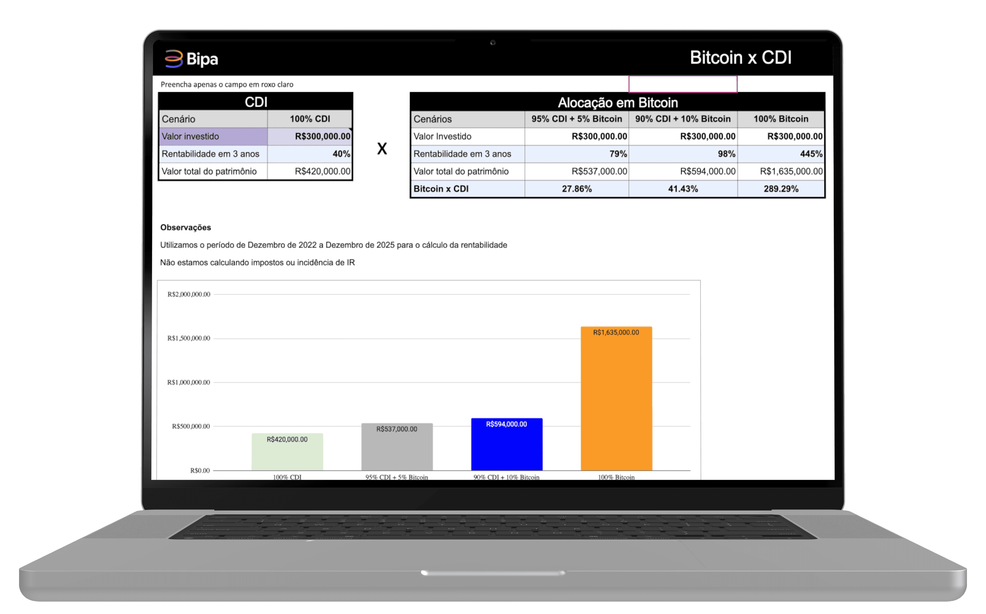 Compare como diferentes porcentagens de Bitcoin performaram em relação ao CDI e veja quanto você poderia ter ganhado (ou deixado de ganhar) ao longo do tempo.